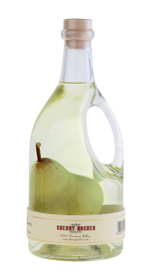 Our poire prisonnière (imprisoned pear) is made from Williams pears and each carafe contains a whole pear. Over time the eau-de-vie takes on the colour of the pear and is enhanced with golden hints.